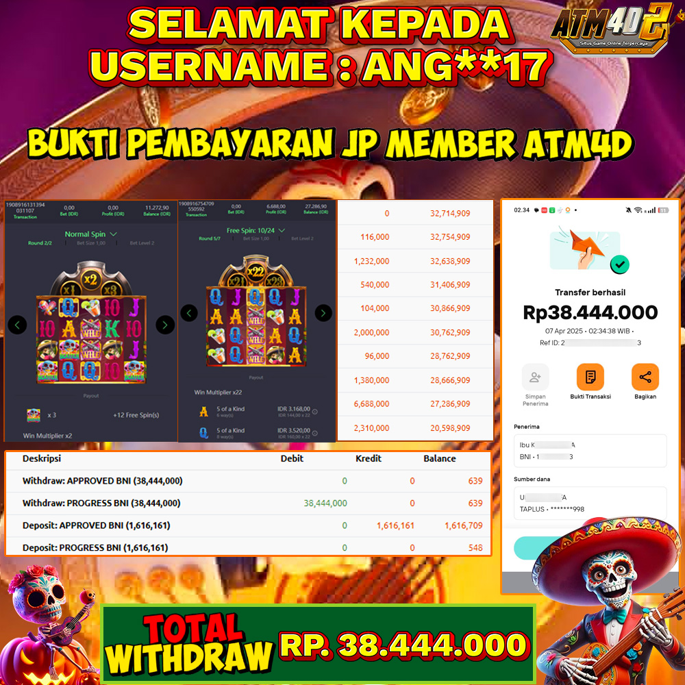 ATM4D2 dikenal sebagai situs terpercaya yang selalu menghadirkan pengalaman bermain slot online yang aman, fair, dan berlisensi resmi. Di sini, kami tidak hanya sekadar memberikan janji, tapi bukti nyata berupa slip kemenangan yang dapat Anda lihat secara langsung.