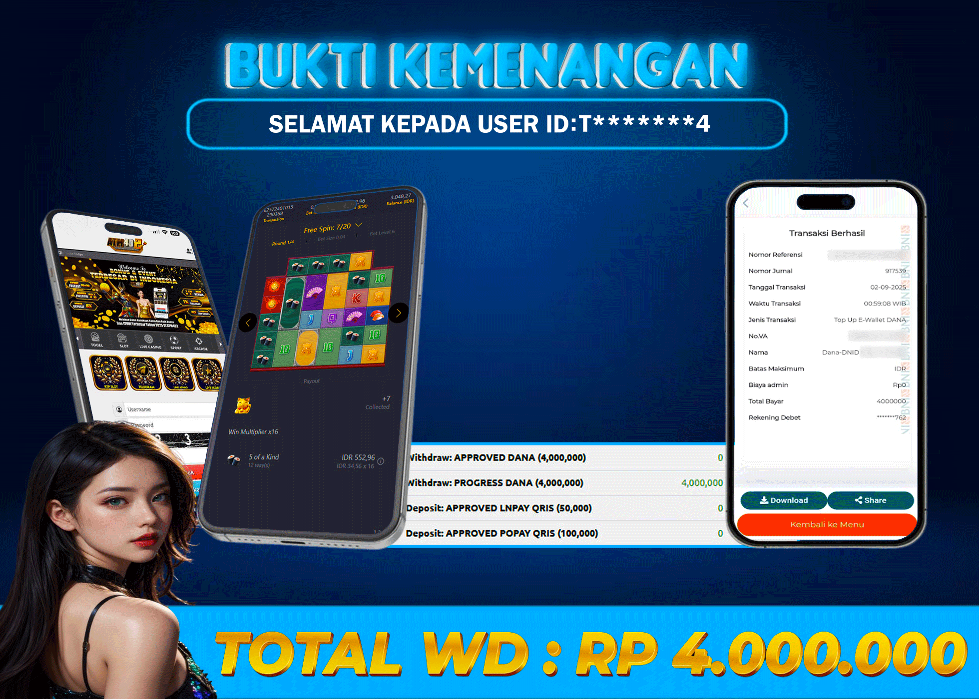 ATM4D2 dikenal sebagai situs terpercaya yang selalu menghadirkan pengalaman bermain slot online yang aman, fair, dan berlisensi resmi. Di sini, kami tidak hanya sekadar memberikan janji, tapi bukti nyata berupa slip kemenangan yang dapat Anda lihat secara langsung.