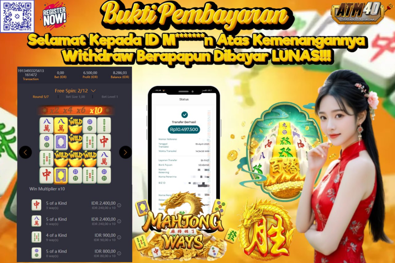 ATM4D2 dikenal sebagai situs terpercaya yang selalu menghadirkan pengalaman bermain slot online yang aman, fair, dan berlisensi resmi. Di sini, kami tidak hanya sekadar memberikan janji, tapi bukti nyata berupa slip kemenangan yang dapat Anda lihat secara langsung.