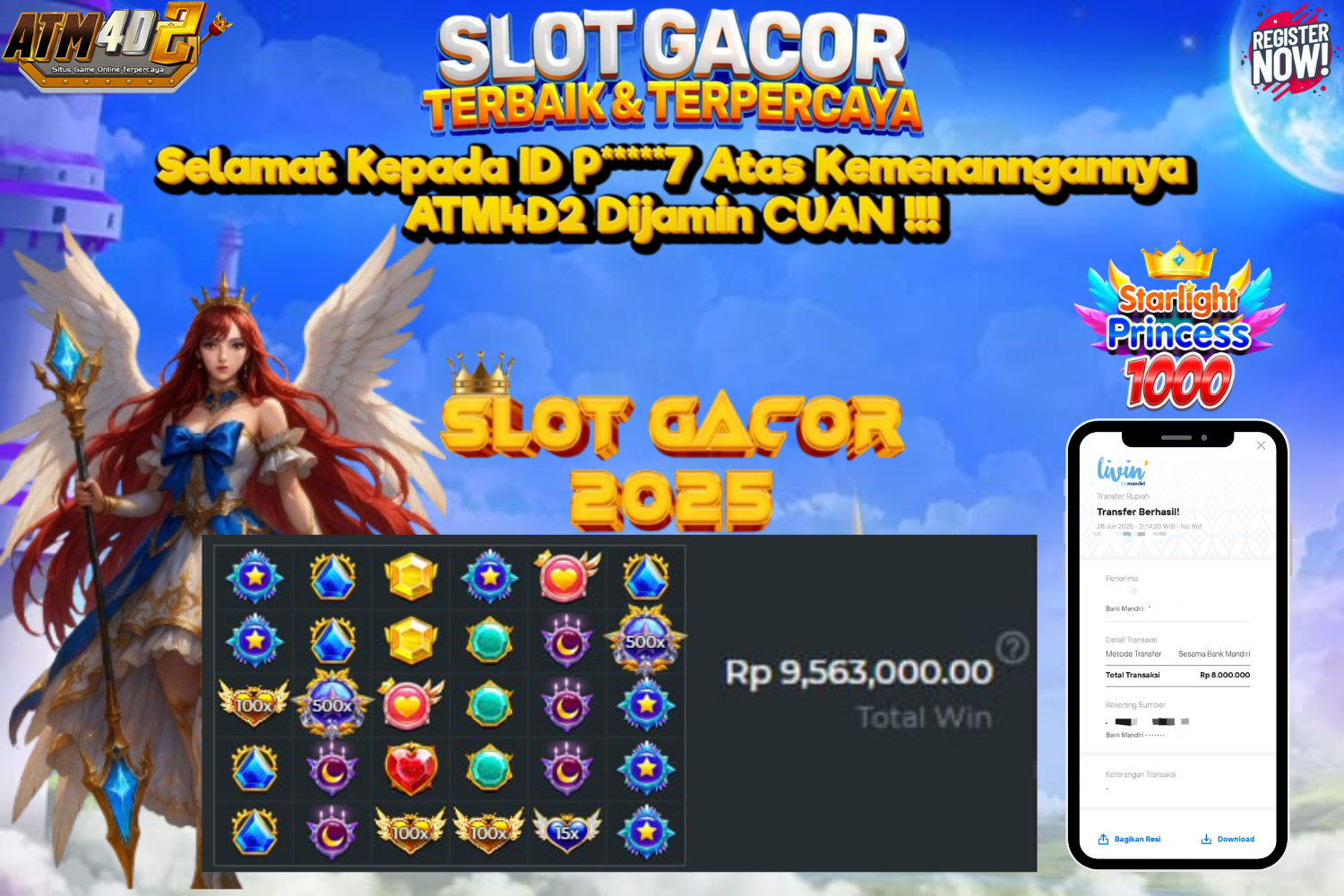 ATM4D2 dikenal sebagai situs terpercaya yang selalu menghadirkan pengalaman bermain slot online yang aman, fair, dan berlisensi resmi. Di sini, kami tidak hanya sekadar memberikan janji, tapi bukti nyata berupa slip kemenangan yang dapat Anda lihat secara langsung.