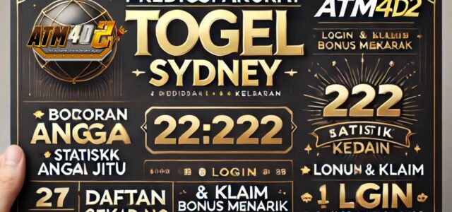 Selamat datang di ATM4D2, situs terpercaya yang selalu memberikan prediksi togel Sydney dengan analisis terbaik. Togel Sydney merupakan salah satu pasaran togel yang paling diminati di ATM4D2 dan dimainkan banyak sekali member.
